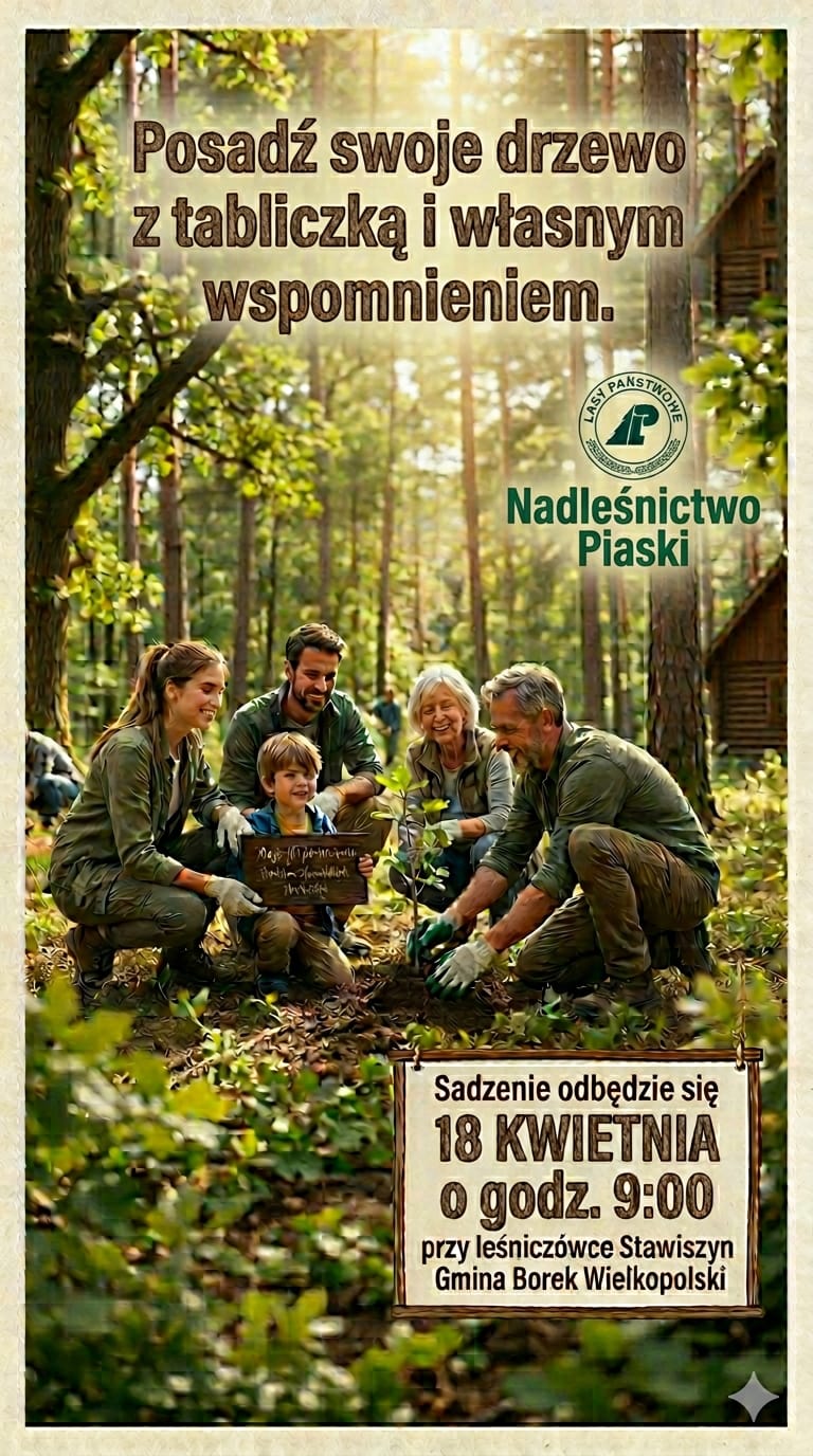 To wyjątkowa przestrzeń w Leśnictwie Stawiszyn, stworzona z myślą o mieszkańcach i ich najważniejszych historiach. Wierzymy, że las to nie tylko drzewa – to miejsce, które łączy pokolenia. W ramach akcji dajemy Ci możliwość posadzenia własnego dębu lub sosny, który stanie się żywym pomnikiem Twoich osobistych sukcesów i wzruszeń.